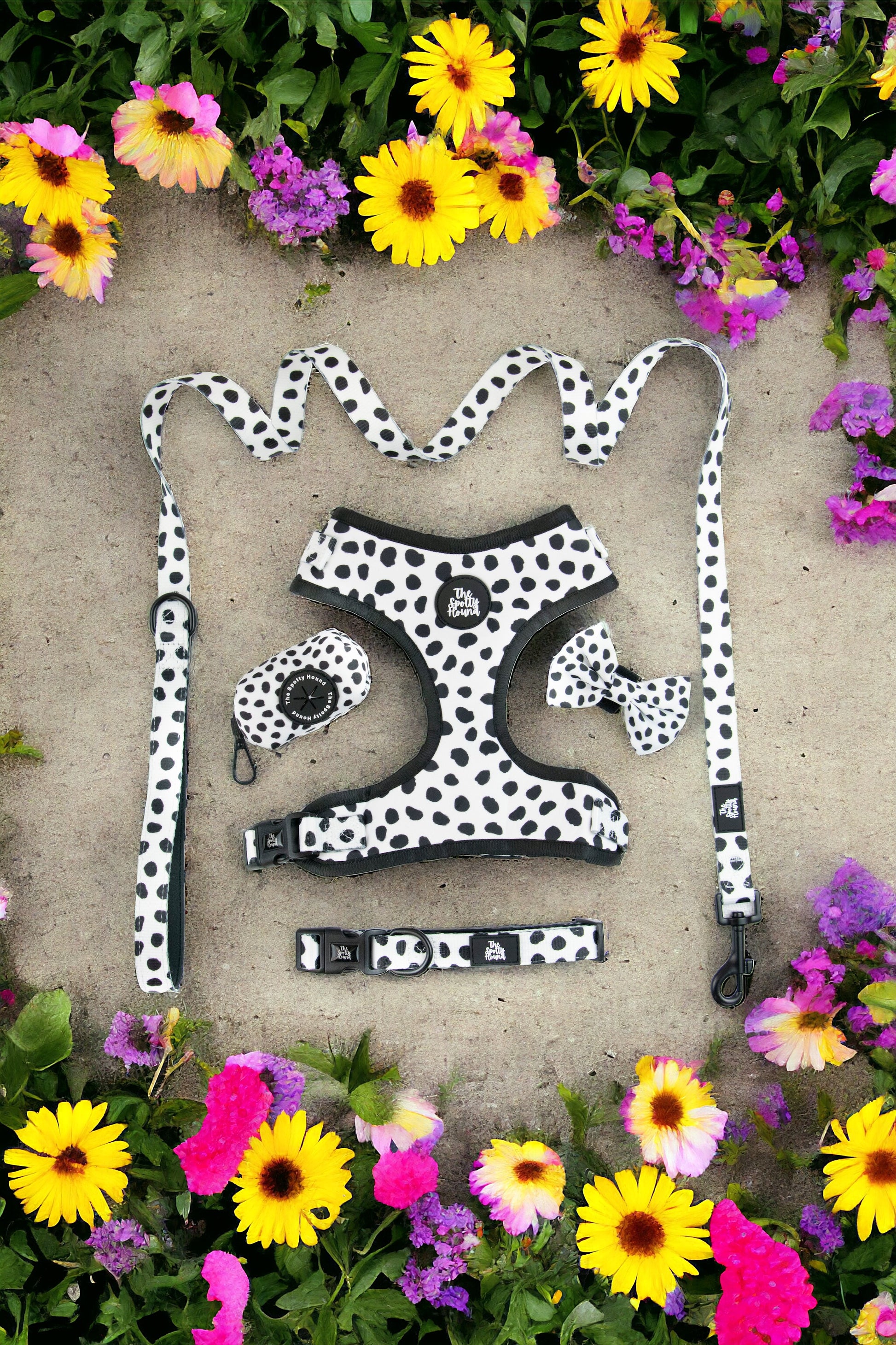Our harness 'Dixie Dalmatian' signature design features elegant Dalmatian spots, making it a timeless fashion accessory and a must have for your pawdrobe.